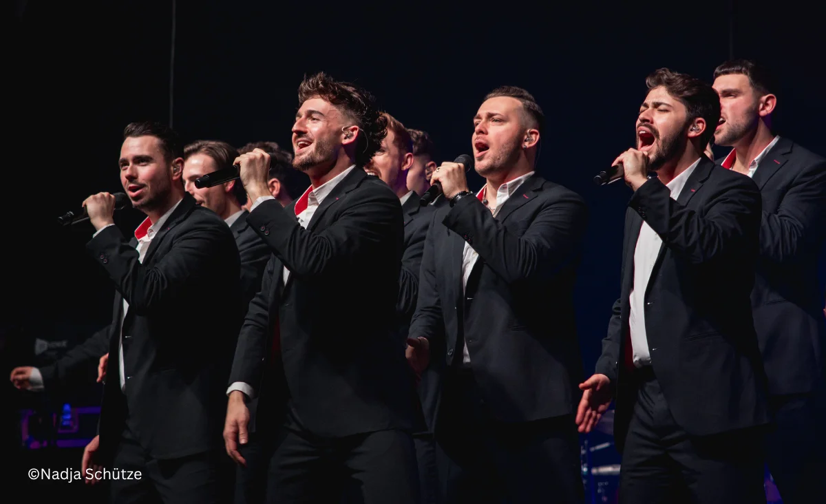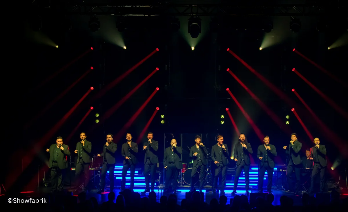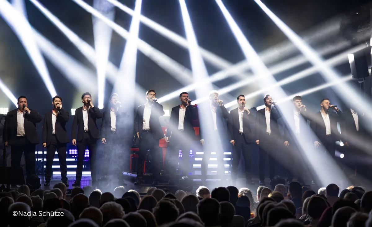 Nun sind sie mit ihrer neuen Show „Songs of Eternity“ auf Tournee: Ein musikalisches Erlebnis, begleitet von einer Liveband – inklusive rot leuchtendem Flügel und Gitarristen – und umrahmt von einer spektakulären Lichtshow. Die 12 Tenöre zelebrieren die Vielseitigkeit der Musik in all ihren Facetten.